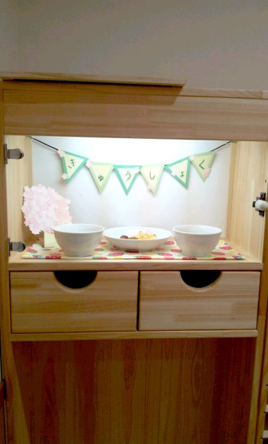 子ども達がどんな給食を食べたかを毎日見れる様に、園児専用の連絡ポスト横に設置してあります。